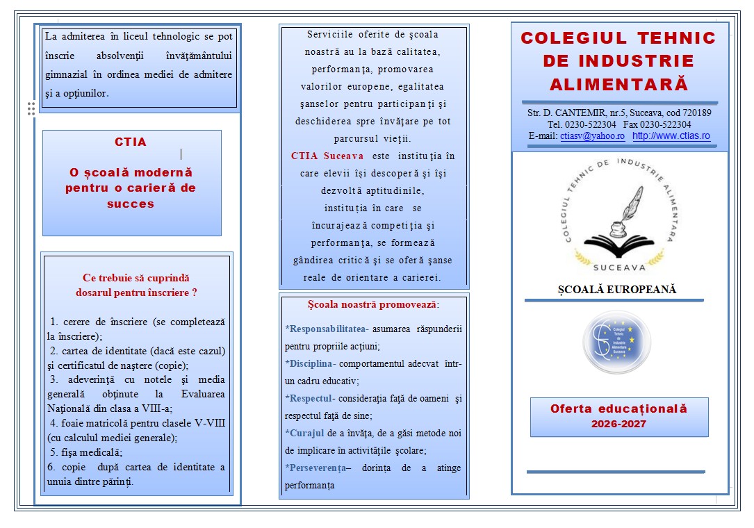 OFERTA DE SCOLARIZARE C.T.I.A. Suceava, anul scolar 2024-2025