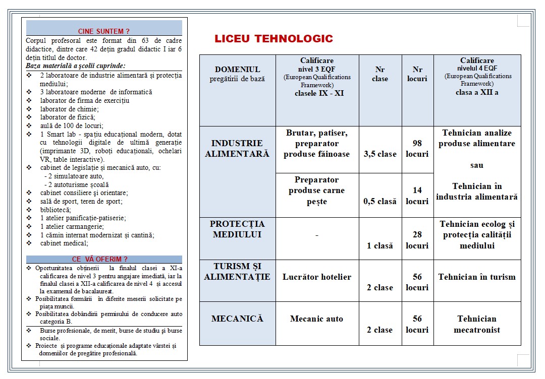 OFERTA DE SCOLARIZARE C.T.I.A. Suceava, anul scolar 2024-2025